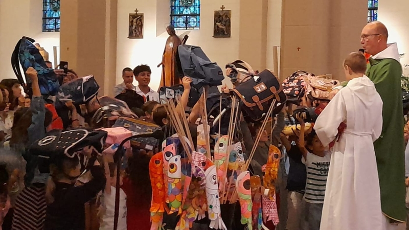 Comme chaque année, une messe de rentrée avec bénédiction des cartables est organisée pour tous nos élèves de la maternelle au collège. Merci au Père Iulian pour la très belle célébration, à Elisabeth Hassler pour la préparation et les magnifiques décors, ainsi qu'à la paroisse St-Barthélémy de Dornach pour l'accueil.
