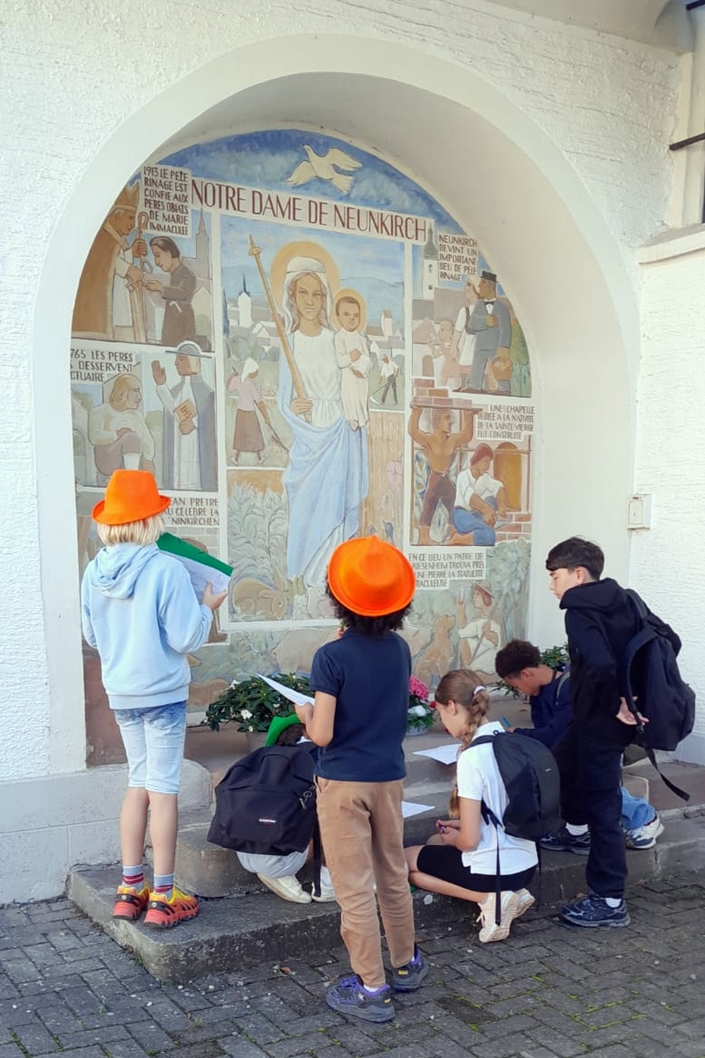 Après le piquenique, à l'ombre ou au soleil selon le choix de chacun, les élèves ont participé à différentes activités ludiques dans ce lieu de pèlerinage reconnu. Découvrir les lieux au travers d'un questionnaire, le tout dans une belle ambiance paisible, loin du tumulte mulhousien : voilà un beau programme pour l'après-midi. Les jeunes ont notamment appris que les chrétiens se retrouvent dans ce lieu depuis plus de 700 ans et que la Chapelle consacrée à Notre-Dame a été construite en 1455, comme en témoigne l'inscription sur le linteau.